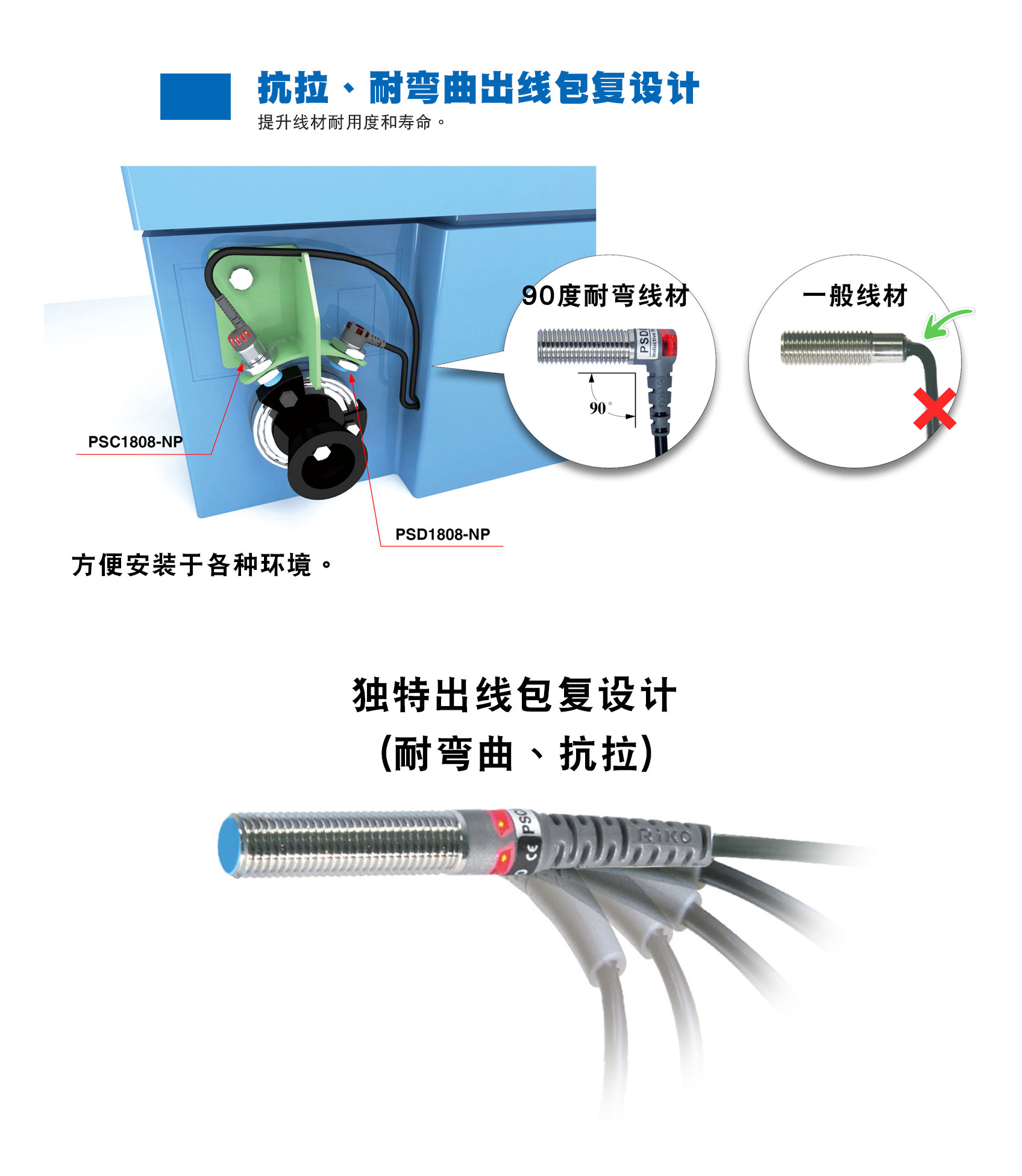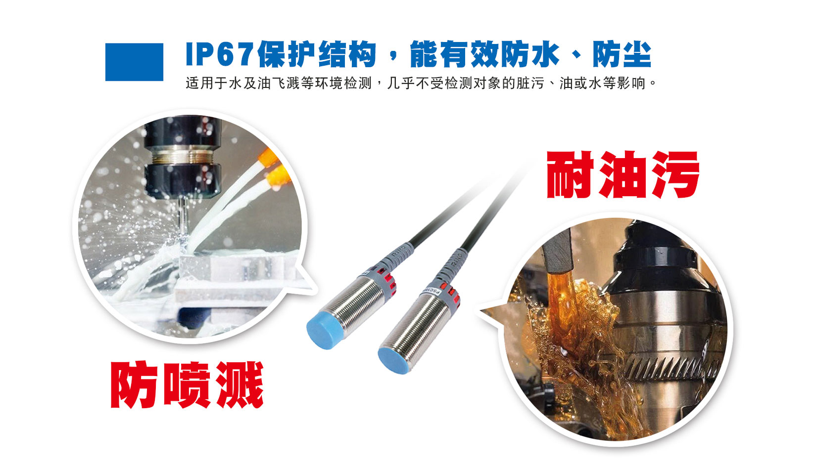 - 不受檢測環境臟污、油、水等影響。