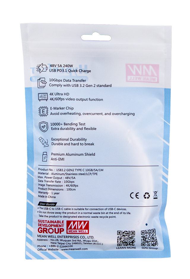 該產(chǎn)品采Type C to C設(shè)計(jì), USB3.2 GEN2除了滿足48V/5A最大充電功率外,更具備10Gbps大量數(shù)據(jù)傳輸能力。此外,本產(chǎn)品適用于多種電子裝置的音源與影像數(shù)據(jù)傳輸,例如計(jì)算機(jī)、平板、行動(dòng)硬盤、虛擬VR眼鏡…等。 具備快速充電,可同時(shí)傳輸大量數(shù)據(jù)的Type C充電/傳輸線,將是您工作或娛樂上的最佳選擇。