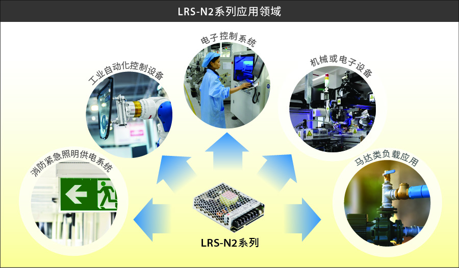 LRS-N2 系列除符合 UL/EN 62386-1 信息類認證,亦符合工業電源類 EN 61558-1 OVC III 設計。整體來說,具 OVC III 設計的產品較適合工業設備使用,可直接從配電箱接線并節省需額外透過一級隔離變壓器的使用成本。此系列符合信息類及工業電源雙認證可協助客戶縮短認證申請,可搭配各種電子設備或機械設備使用,如機械手臂、馬達類負載、咖啡機、消防緊急照明供電系統等。若您有設備需求具備 200% 瞬間峰值功率的應用方式,可選用 LRS-N2 系列產品或請與明緯業務團隊做聯系。