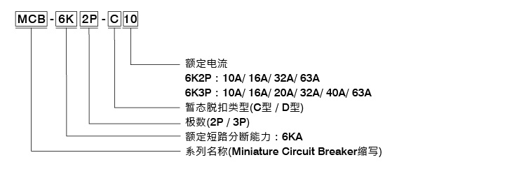 MCB-6K2P-C10 MCB-6K2P-C16 MCB-6K2P-C32 MCB-6K2P-C63