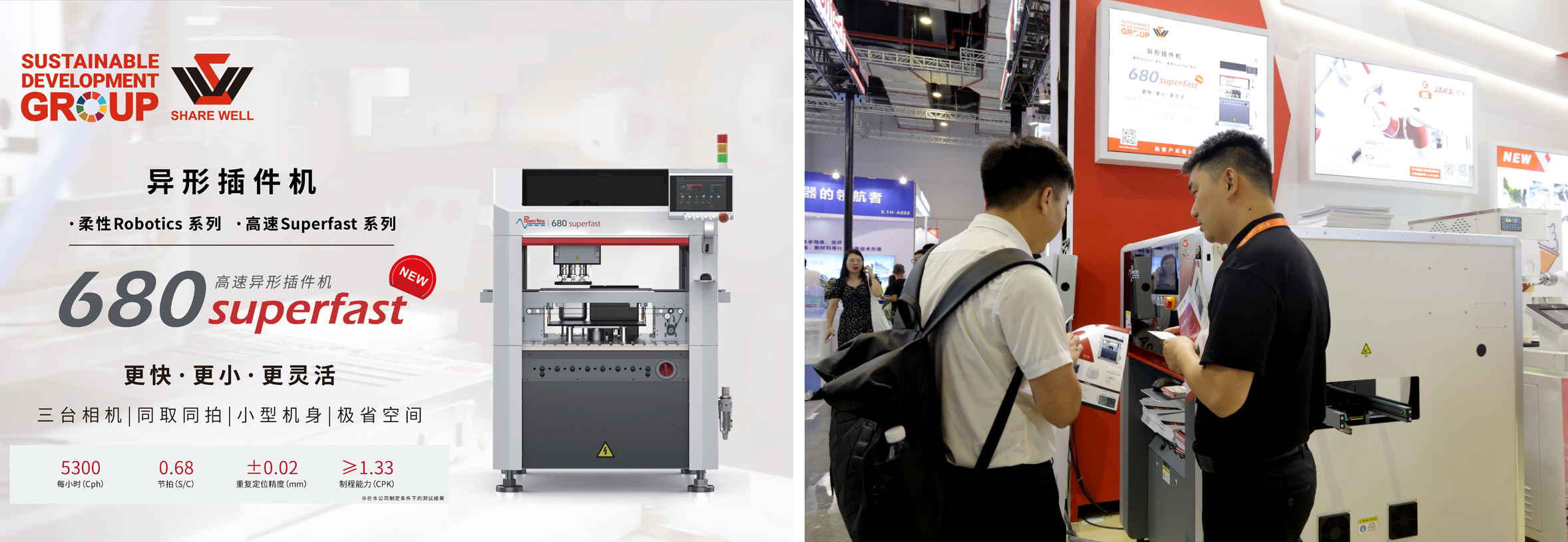 680 Superfast系列高速異形插件機采用龍門式結構,以機器視覺、運動控制和深度學習算法為核心,其精度、速度、靈活性和兼容性已達到行業(yè)領先水平。其具有更快、更小、更靈活以及三臺相機,同取同拍,小型機身,極省空間等特點獲得較多客戶的認可。